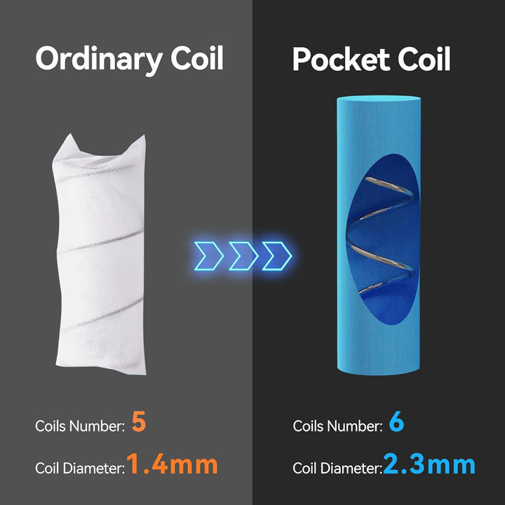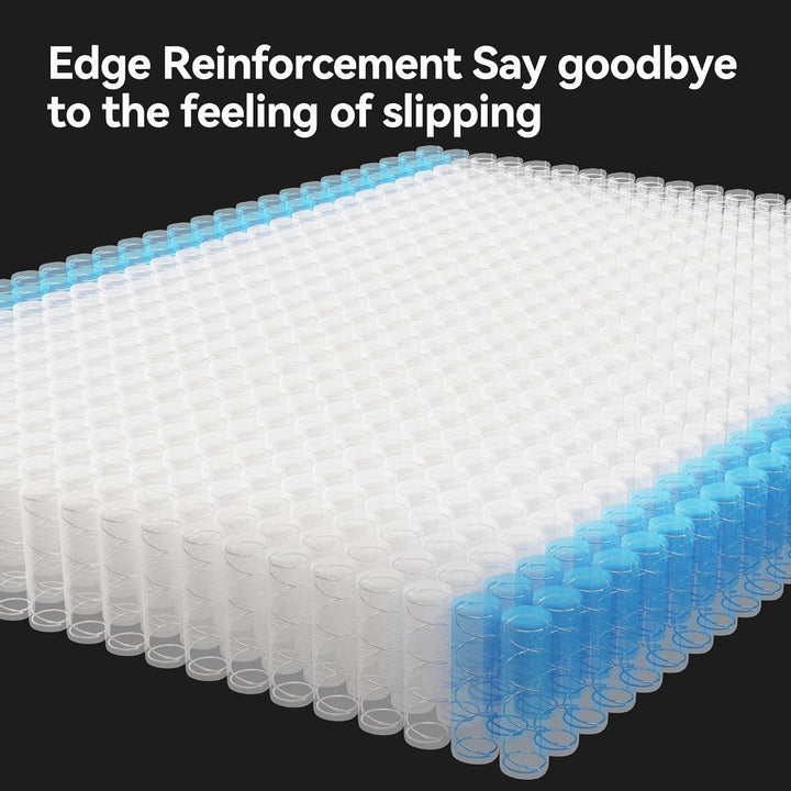 【Edge Load Bearing】Medium firm mattress has a double row of springs with reinforced edges, giving you more space for sleeping. The carefully reinforced edge support not only significantly extends the life of the mattress, but also perfectly maintains the ideal shape of the mattress. At the same time, for people with limited mobility, the strong edge support can ensure a smooth transition, allowing you to stretch out in bed and enjoy every inch of space.