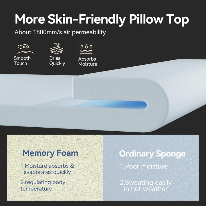 【Cloud-Like Feel】Experience the revolutionary Knitted fabric with Comfortable foam and feel sleep-free. Breathes like a cloud, allowing air to circulate freely, keeping your sleeping environment dry and comfortable. The moment you lie down, you will feel as if you are gently surrounded by soft clouds, and the feeling of comfort will instantly sweep over your body, allowing you to immerse yourself in a cloud-like sleep experience.
