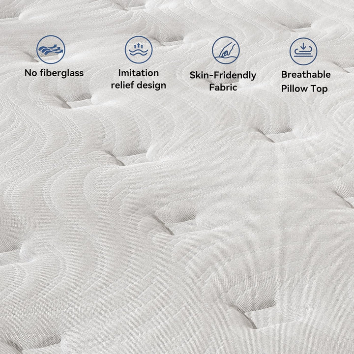 【Sleep Your Way】The stylish light gray mattress, with a peak pattern design combines fashion with function. 3 ergonomic zones and over 600 adaptive springs provide targeted support, maintaining your spine's natural curve. This innovative design eases existing back pain and prevents future spinal issues.