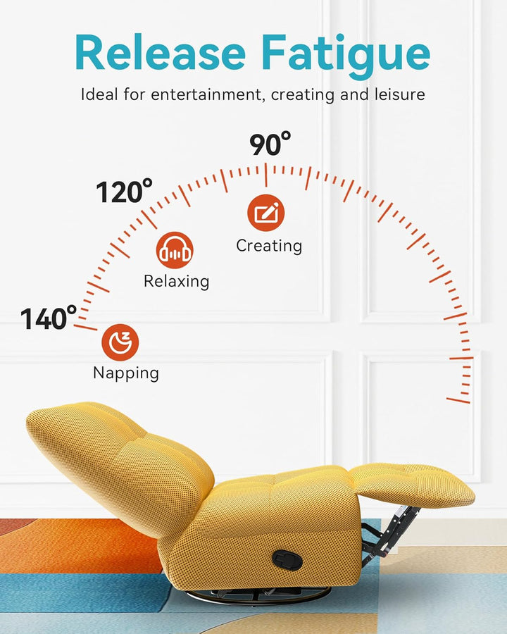 【Total Fatigue Liberation】-- A chair that could 30° rocking, 360° swivel, 140° adjustable recline. No matter what reclining position you take, your body feels rested